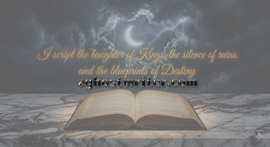 "I script the laughter of Kings, the silence of ruins, the blueprints of Destiny."